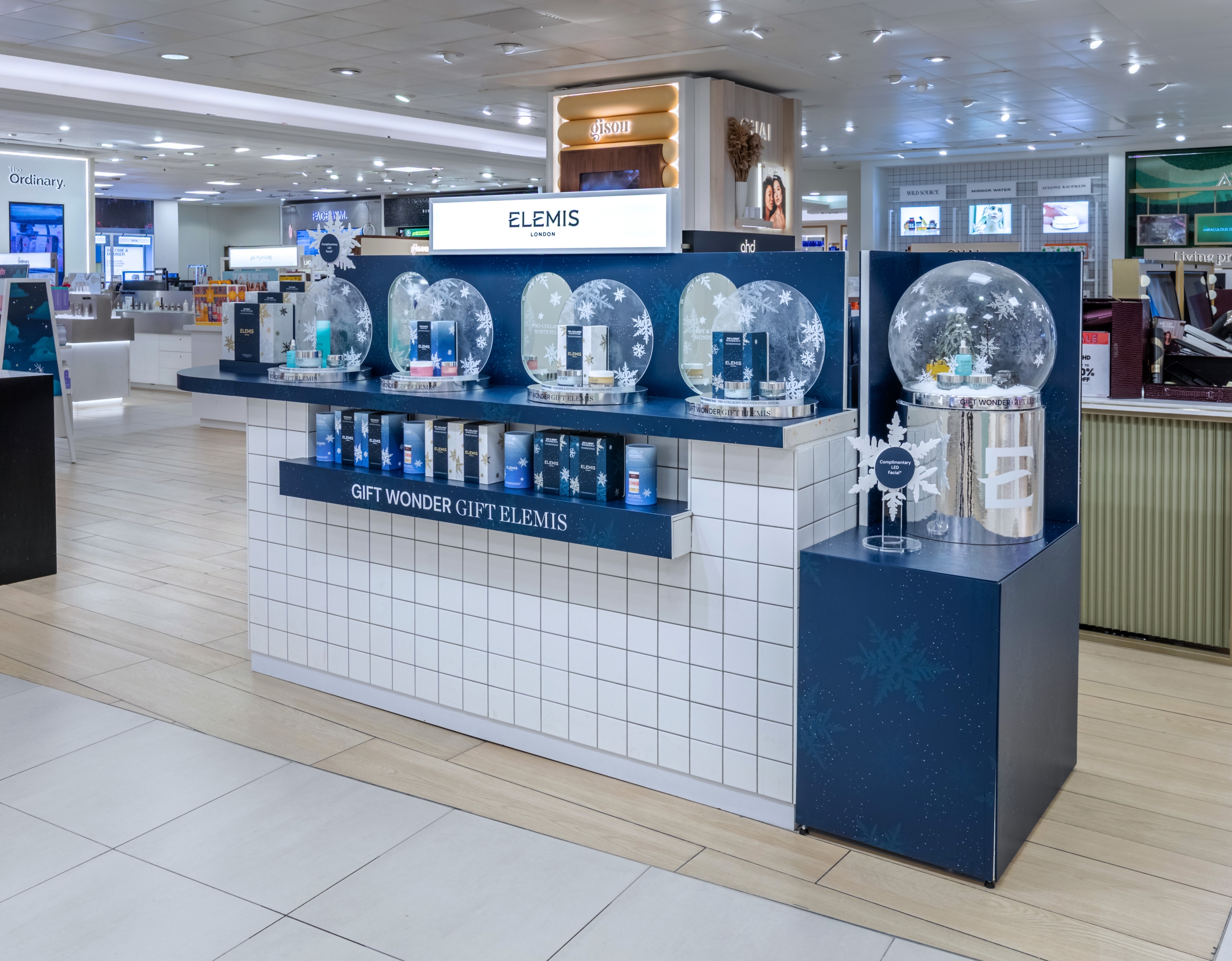 While the season can feel loud and fast, ELEMIS offers a moment of stillness. For the Gift ELEMIS campaign, finely detailed snow globes with intricate snowflakes formed the centrepiece, a showcase of craftsmanship on an exceptionally tight timeline. Soft textures, spa-inspired materials, and tonal finishes create a restorative environment aligned perfectly with the brand’s wellness-first DNA.