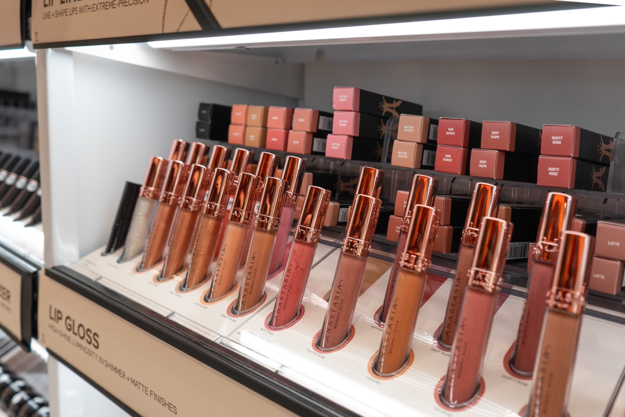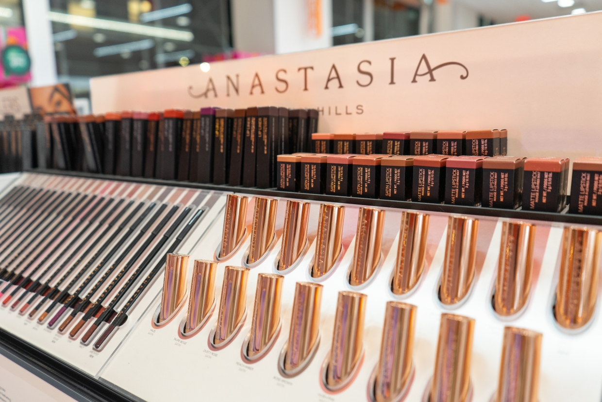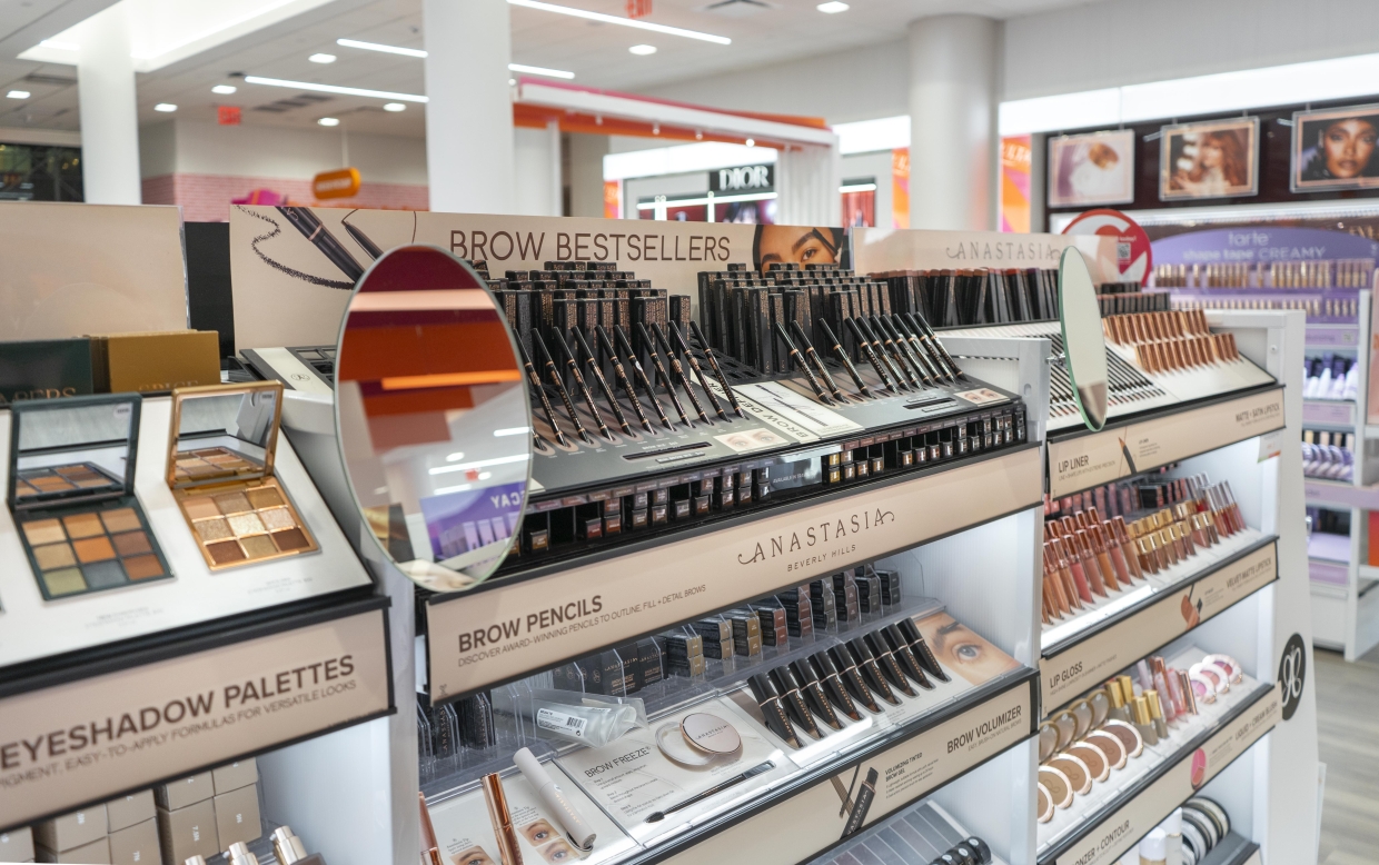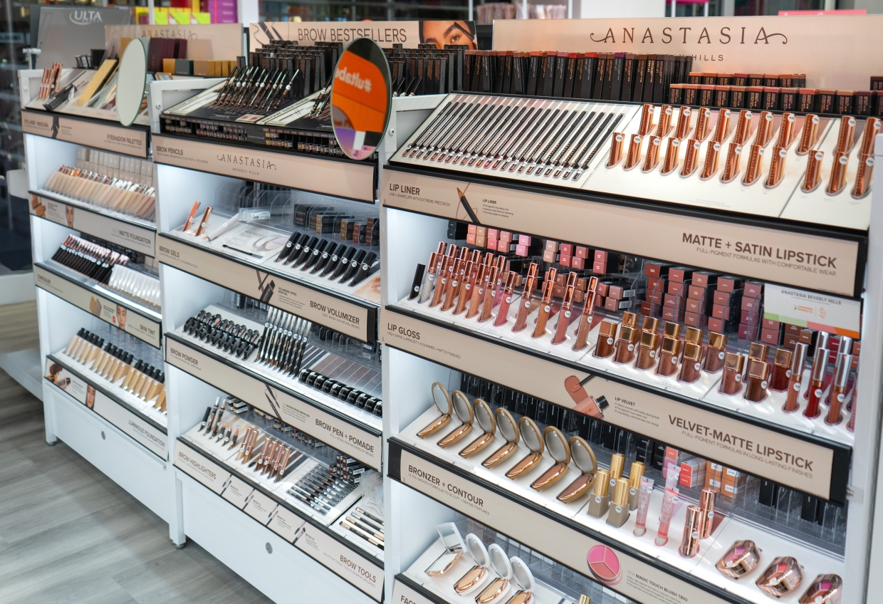 Collaborating with Anastasia Beverly Hills, Array Marketing created a beautiful open-sell display for Ulta Beauty that highlights ABH’s artistry with illuminated shelving, modular sections, and a luxe pale-pink and champagne-gold palette designed for effortless product discovery.
