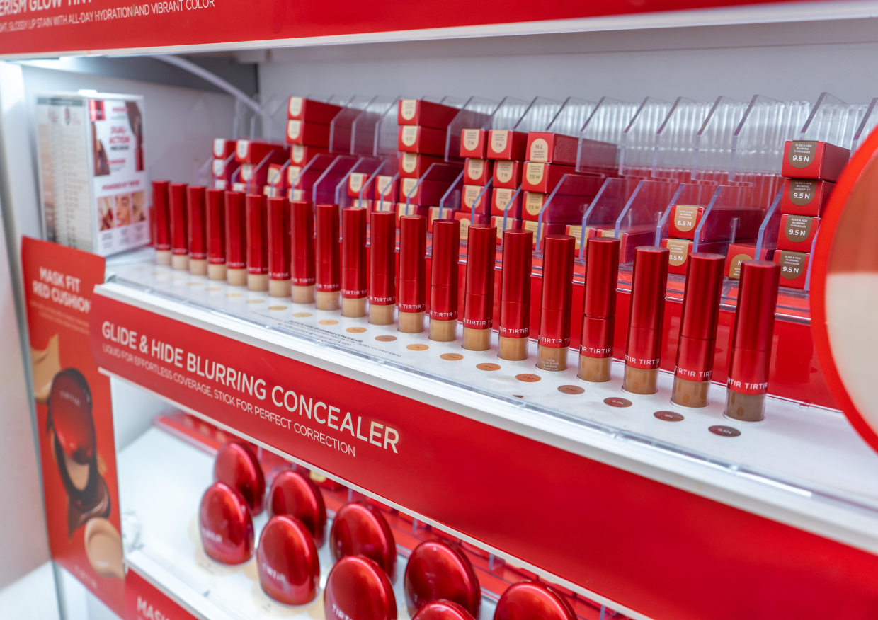 Array Marketing partnered with South Korean beauty brand TIRTIR to transform Ulta Beauty into a bold K-Beauty destination. A supersized Cushion Foundation anchors the display, while clear trays spotlight the Waterism Glow Tint lineup, making shade discovery easy and eye-catching.