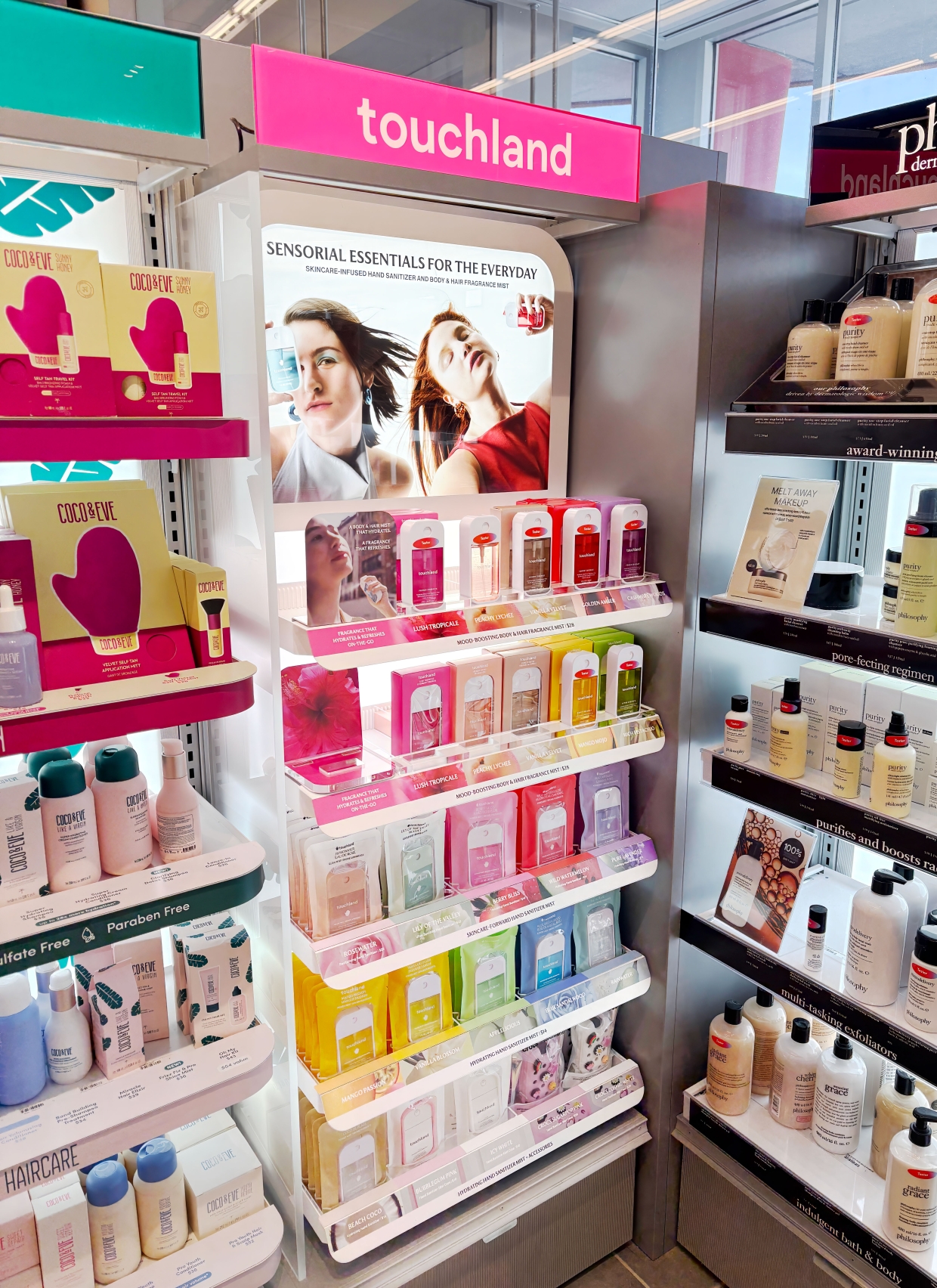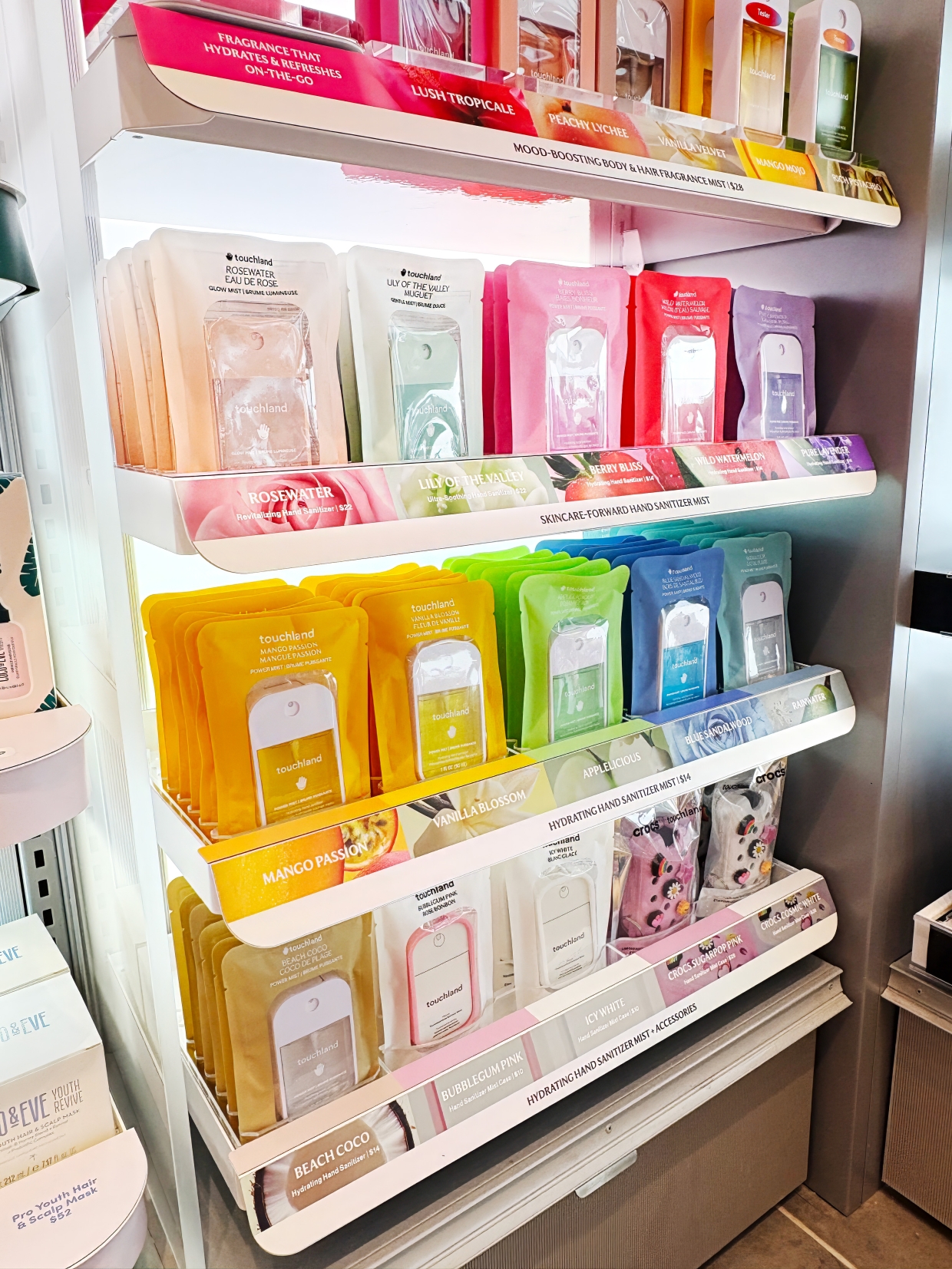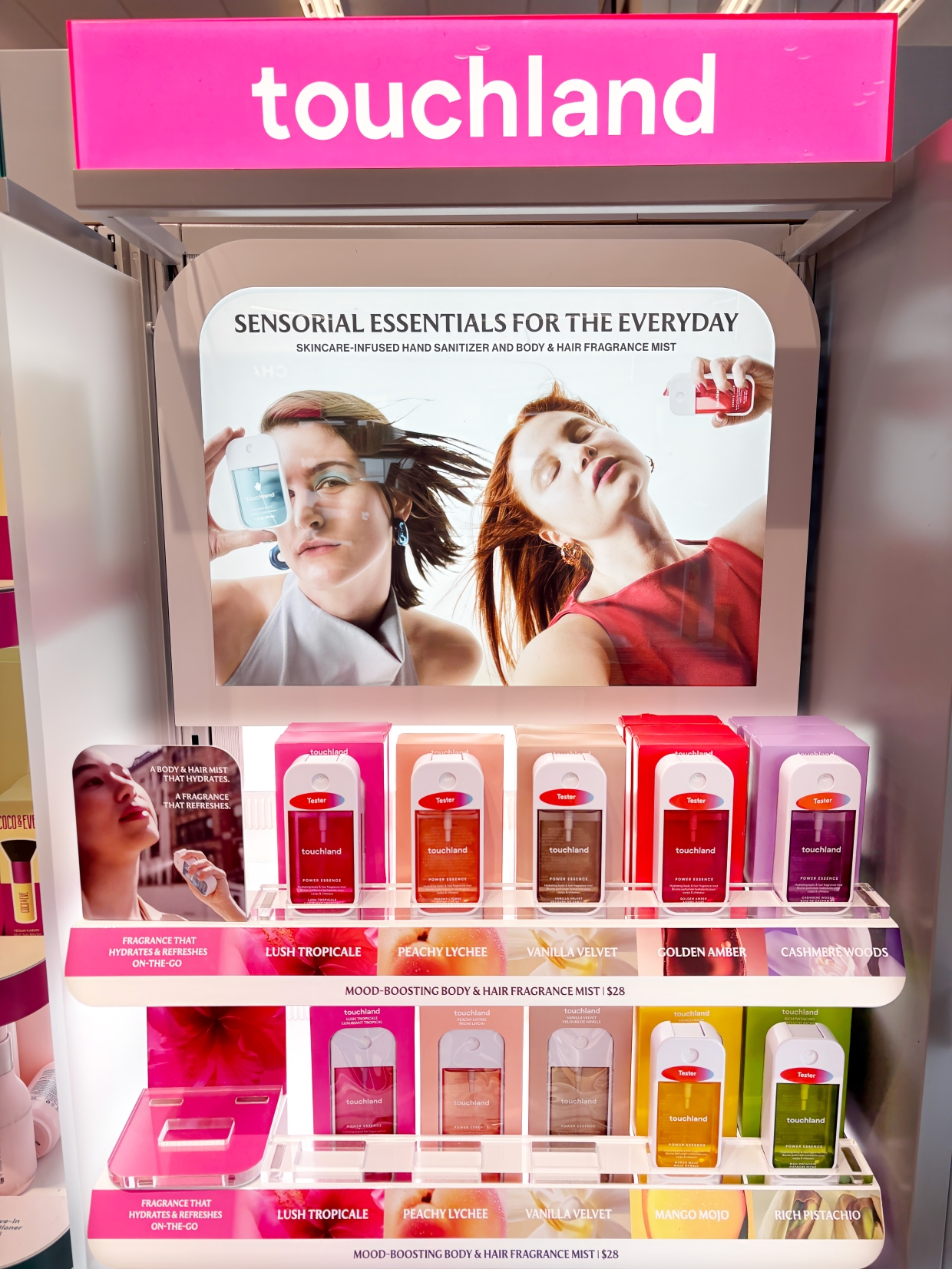 In partnership with Touchland, Array Marketing created a vibrant open-sell display that brings its sensorial approach to everyday essentials to life in the beauty aisle of Shoppers Drug Mart. Illuminated shelving, bold signage, and a colourful product lineup make it easy for shoppers to explore skincare-infused hand sanitizers alongside body and hair mists.